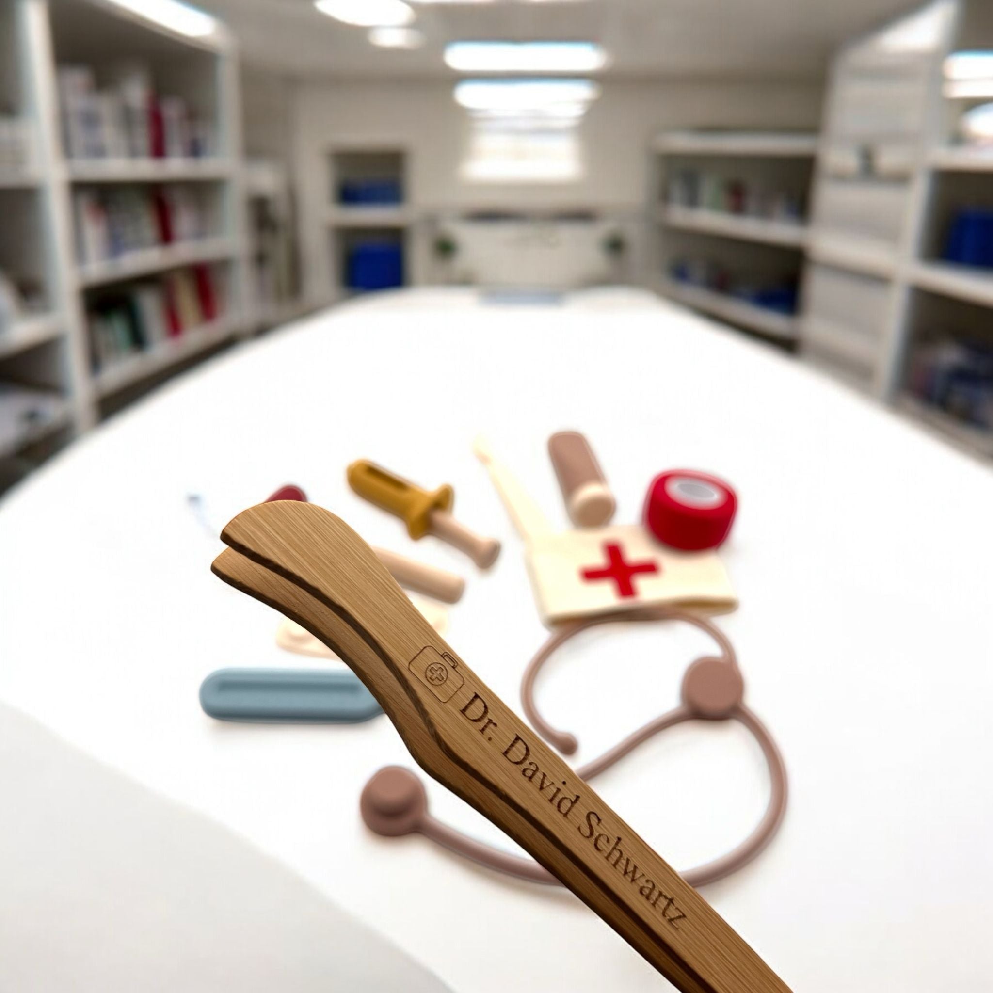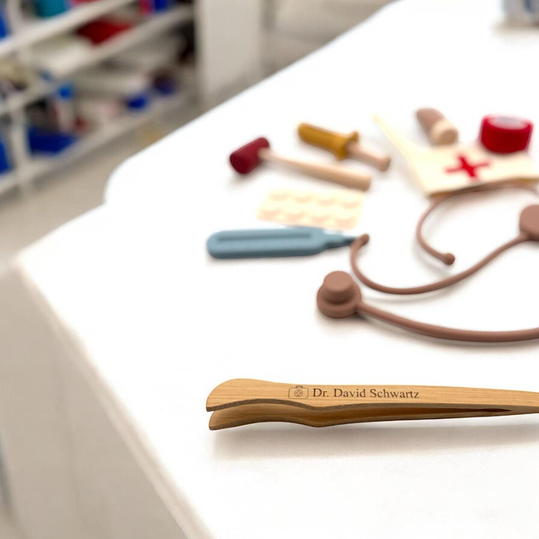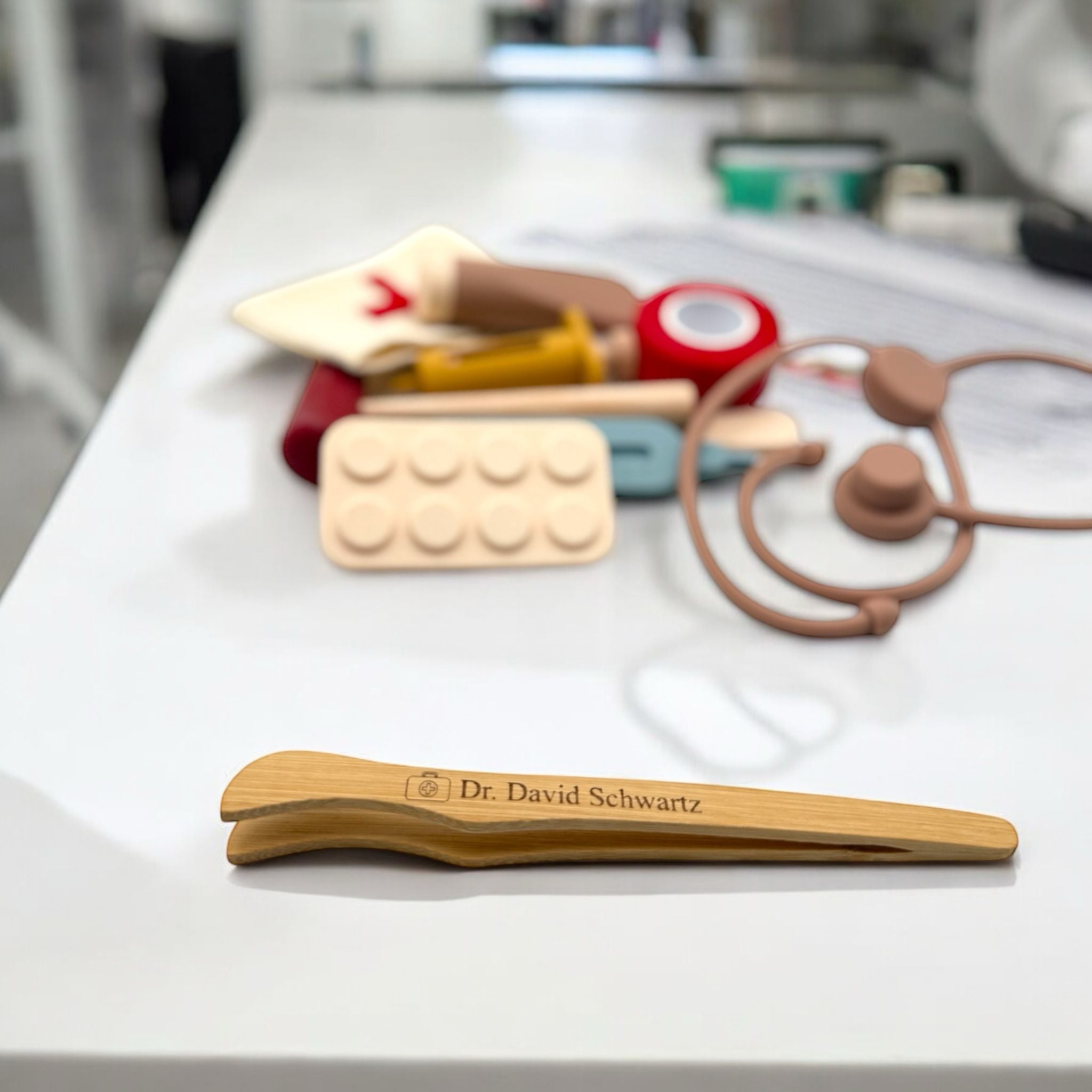 We will engrave the young doctor's full name on the tweezers, which will give him or her a sense of belonging, responsibility, and uniqueness