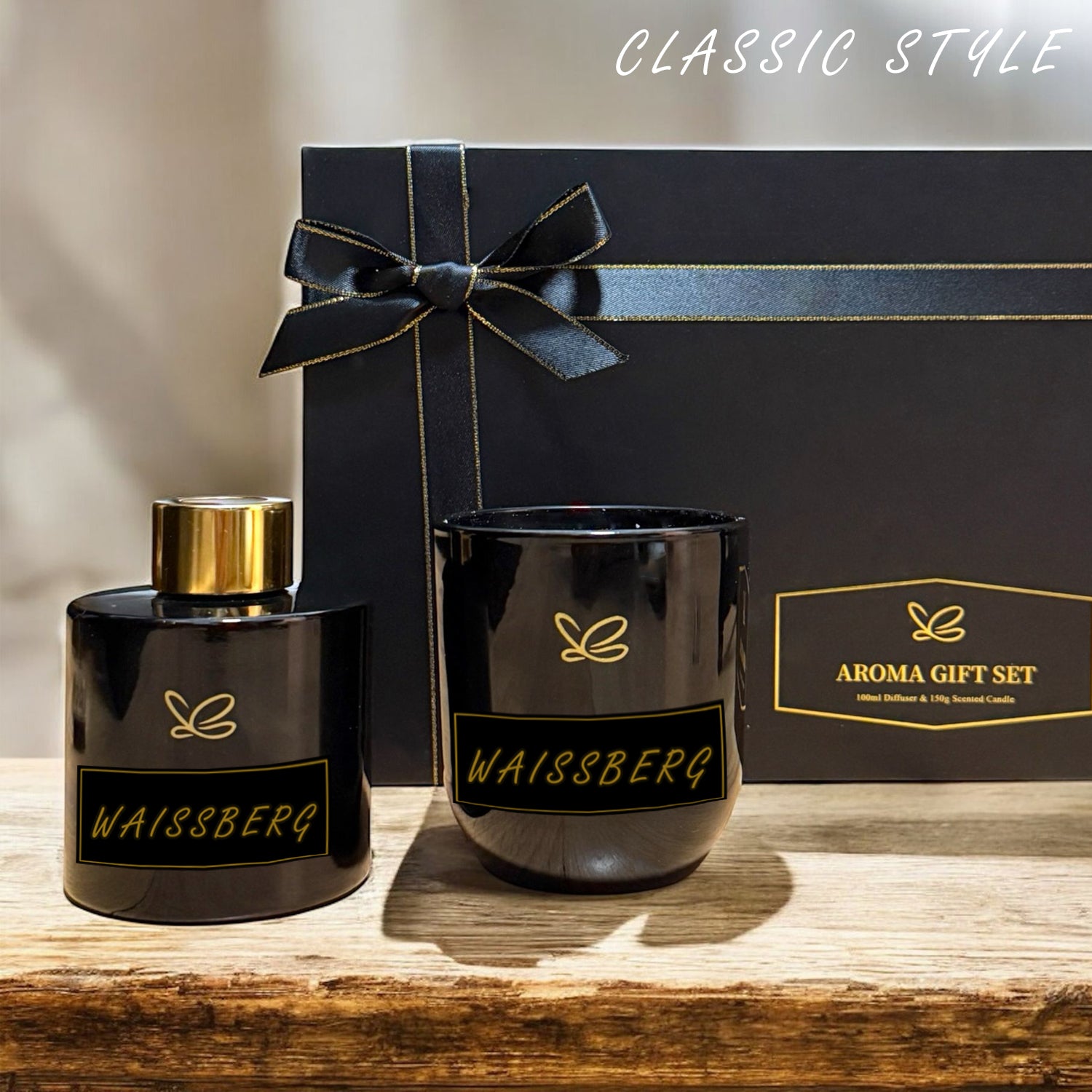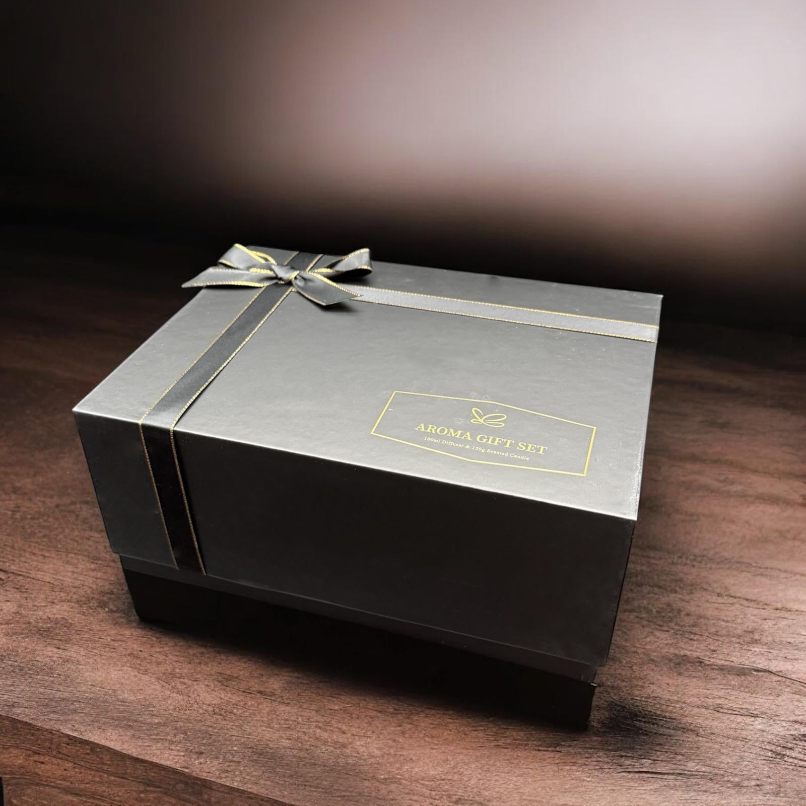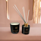 The Candle & Reed Diffuser Gift Set includes: A perfect box for gifting or adding an elegant touch to your space, 1x 140g candle and 1x 100ml reed diffuser, with diffuser sticks for effortless diffusion. The case is designed in black with a touch of gold - a design that conveys power, elegance and luxury