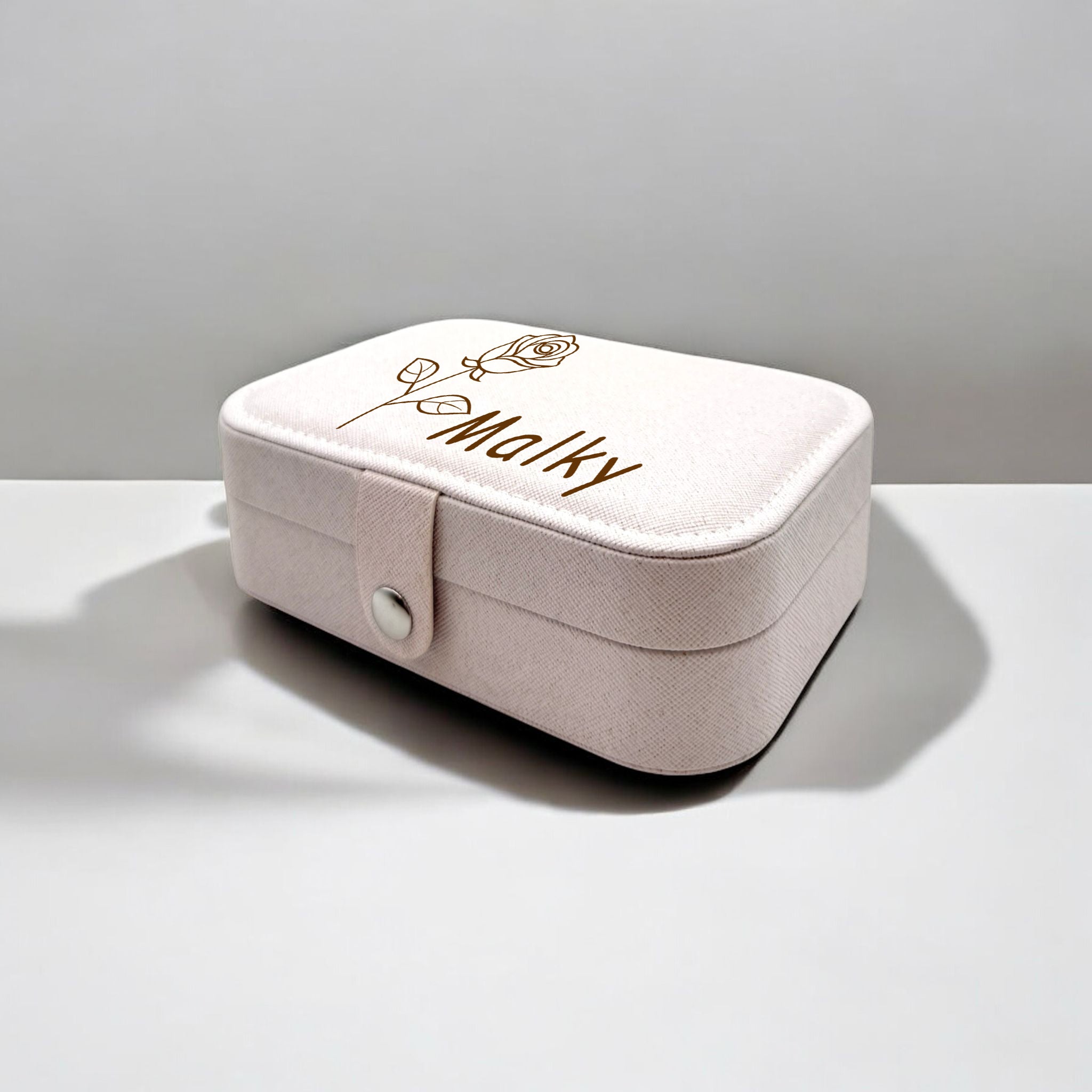 The personalized jewelry case keeps your jewelry organized and secure. This customized jewelry box is ideal for carrying your essentials in style