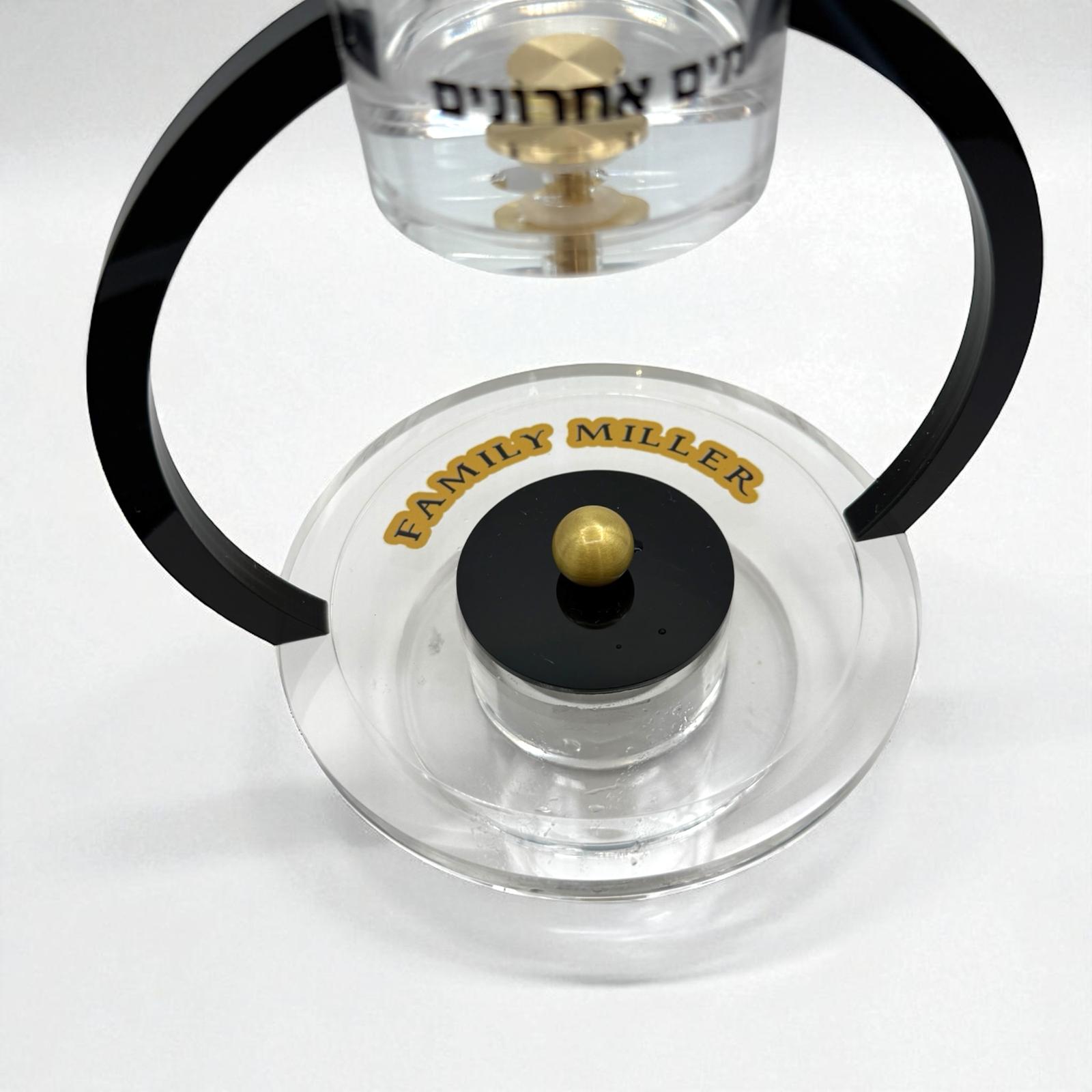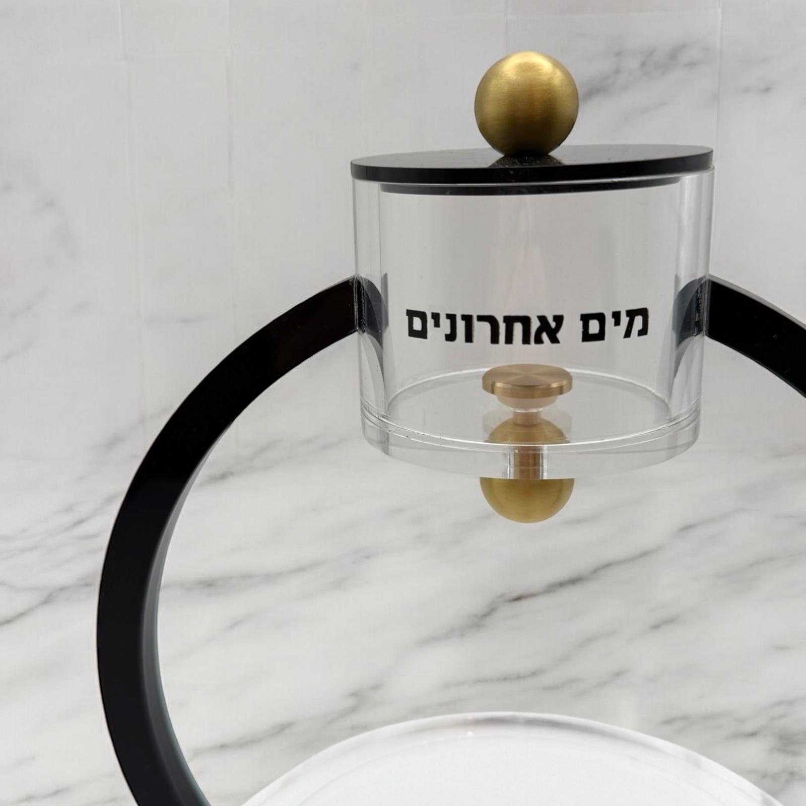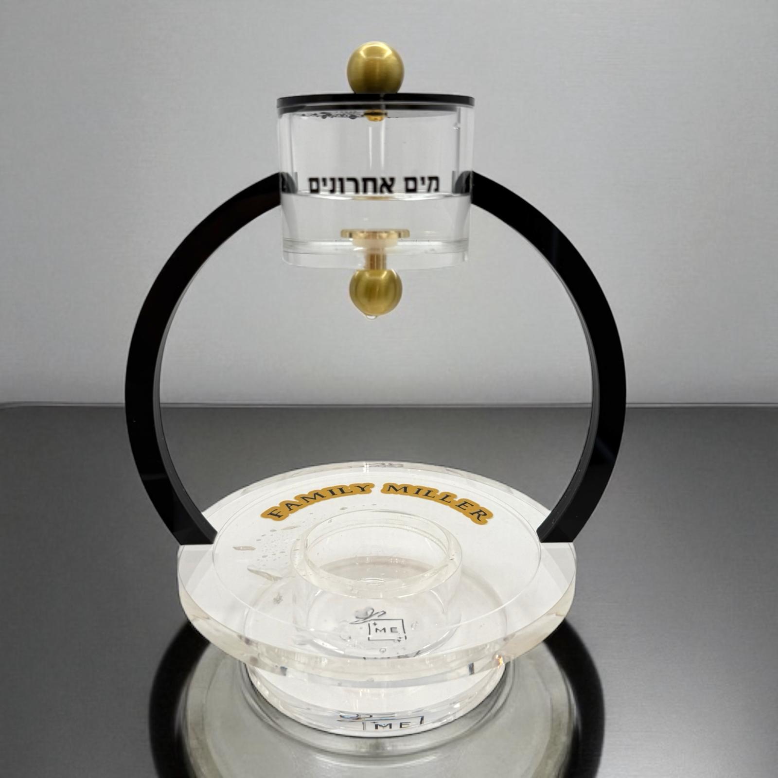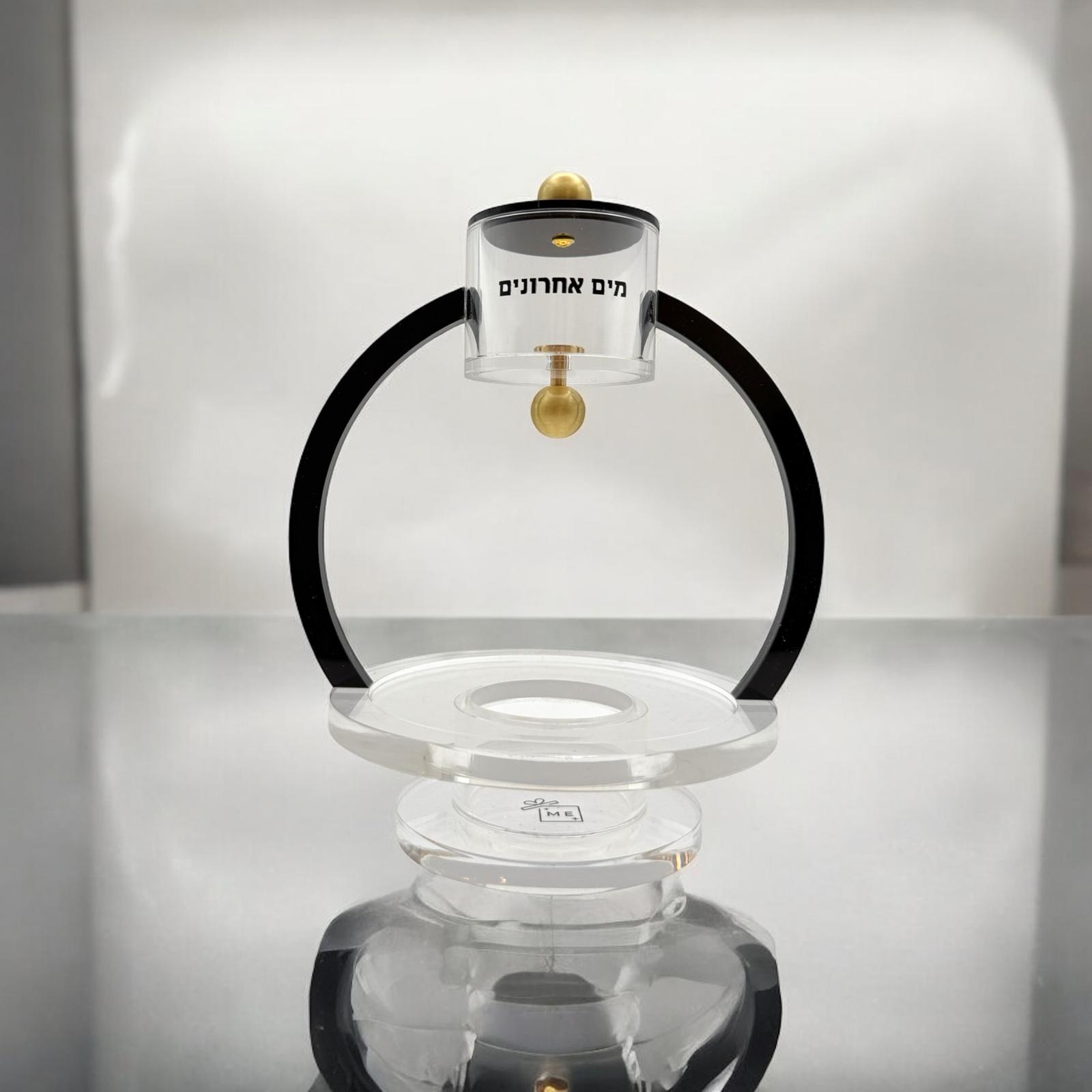 This Lucite Mayim Achronim set is extremely fashionable and so useful! Made of high-quality acrylic and plastic and easy to clean. Includes luxurious black handles made of thick, high-quality plastic. At the top there is a water filling tank, with a black lid and a hole at the bottom. The hole is covered by an iron ball that can be lifted and then the water is thrown down. Lift the iron ball gently and the water will be thrown down easily. Smart and stunning!
