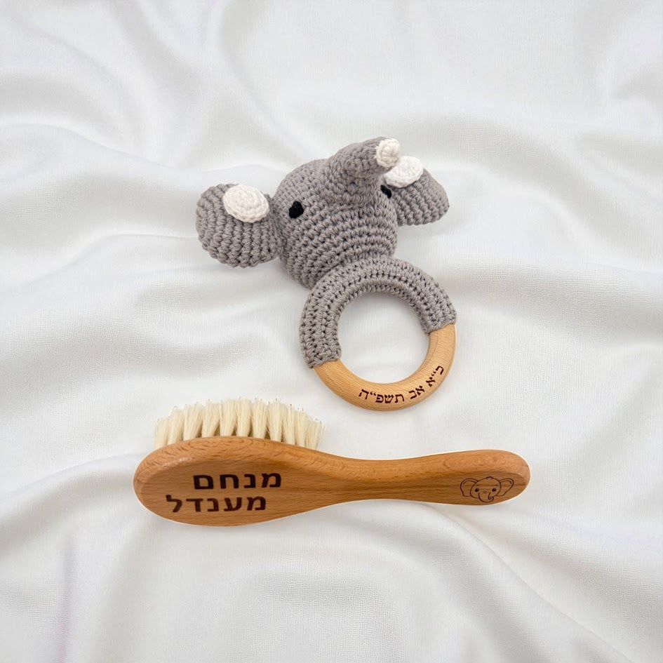 - Wooden hairbrush: with laser engraving of the baby's name and drawing an animal according to the chosen set