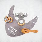 6. A toy: Beige set: Silicone toy. Grey set: Silicone and wooden toy. Pink and Yellow set:  Pacifier clip