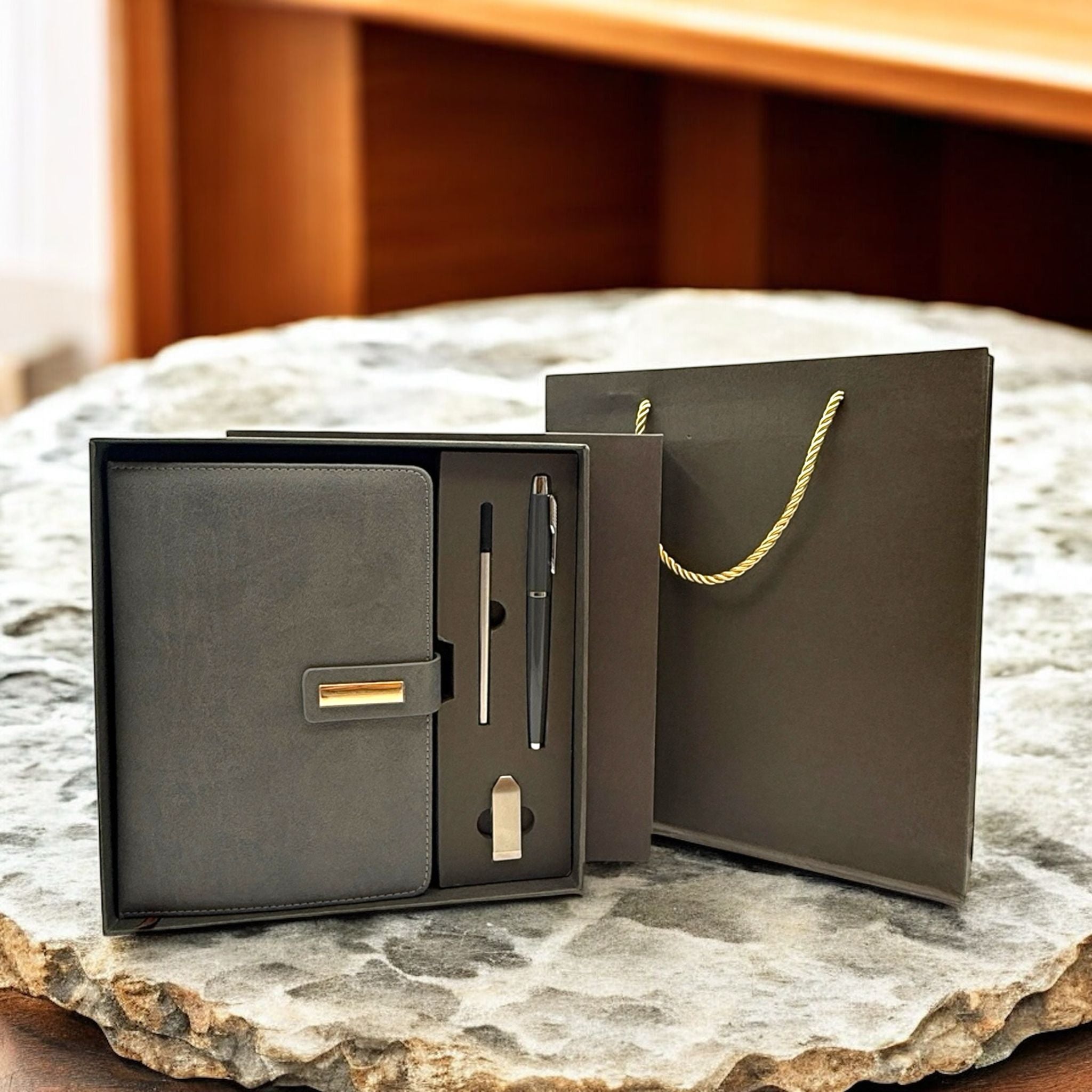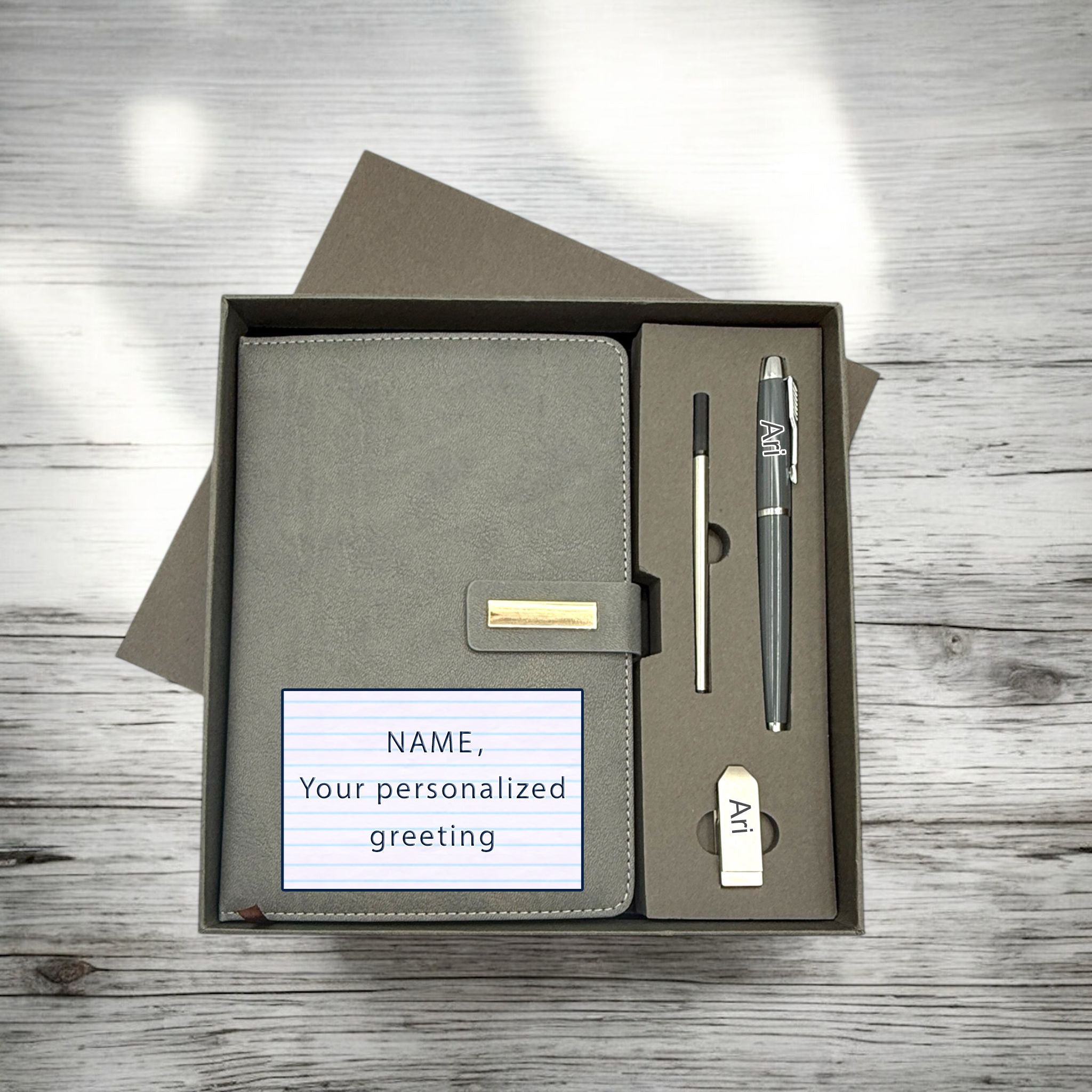 Gray Set Notebook+ Pen+ Refill + USB flash driver