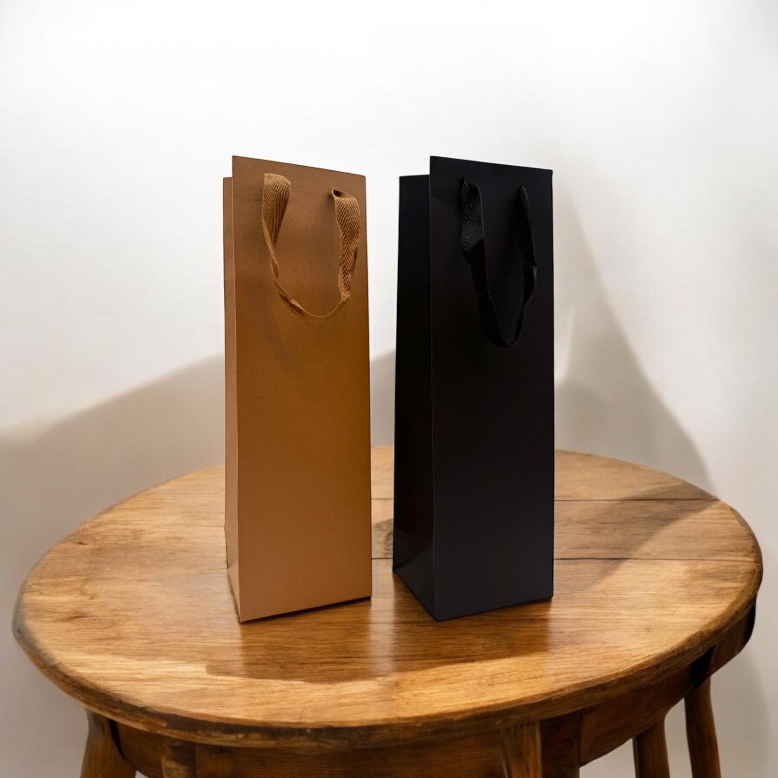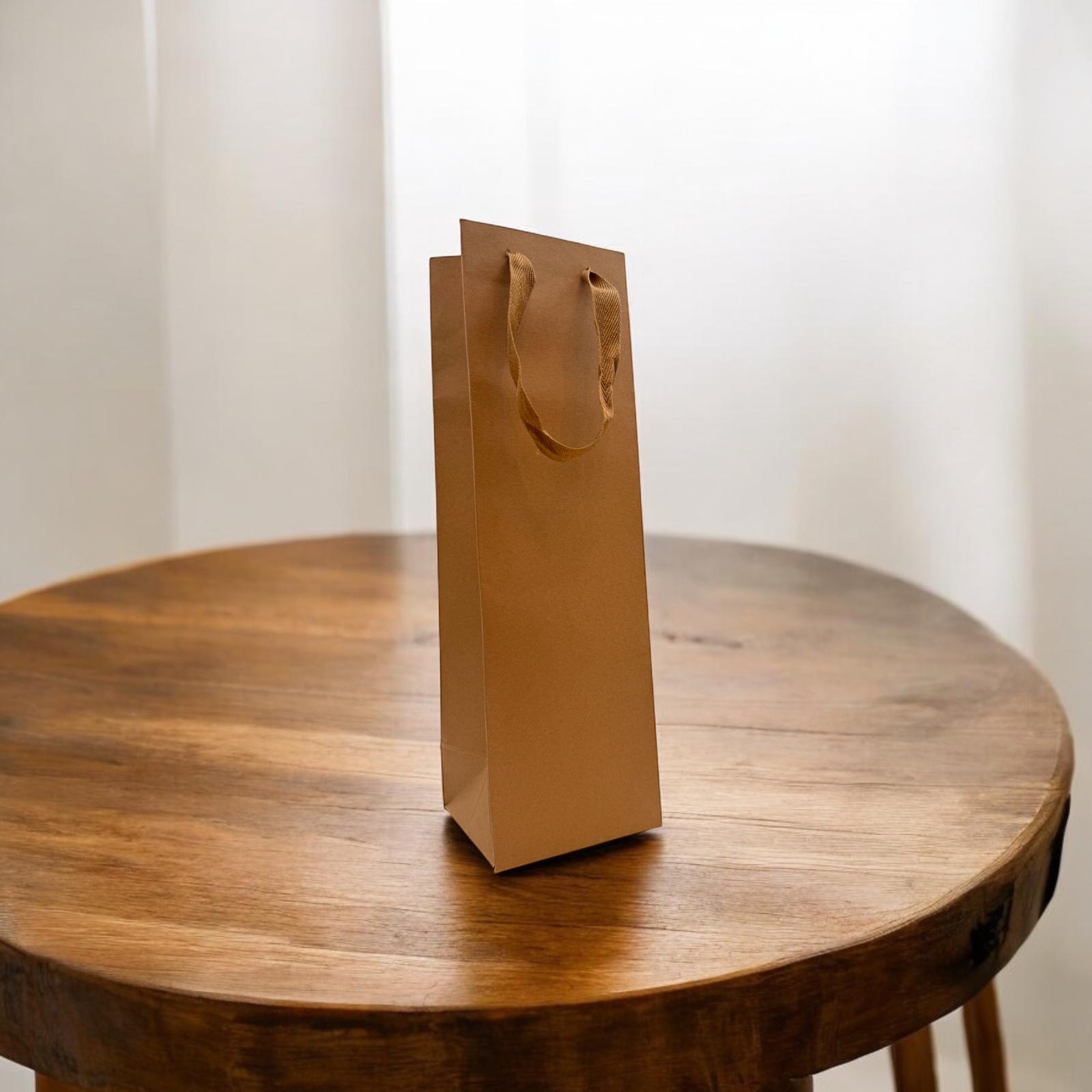 Premium Kraft Paper Wine Bottle Bag with sturdy ribbon Handles