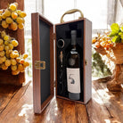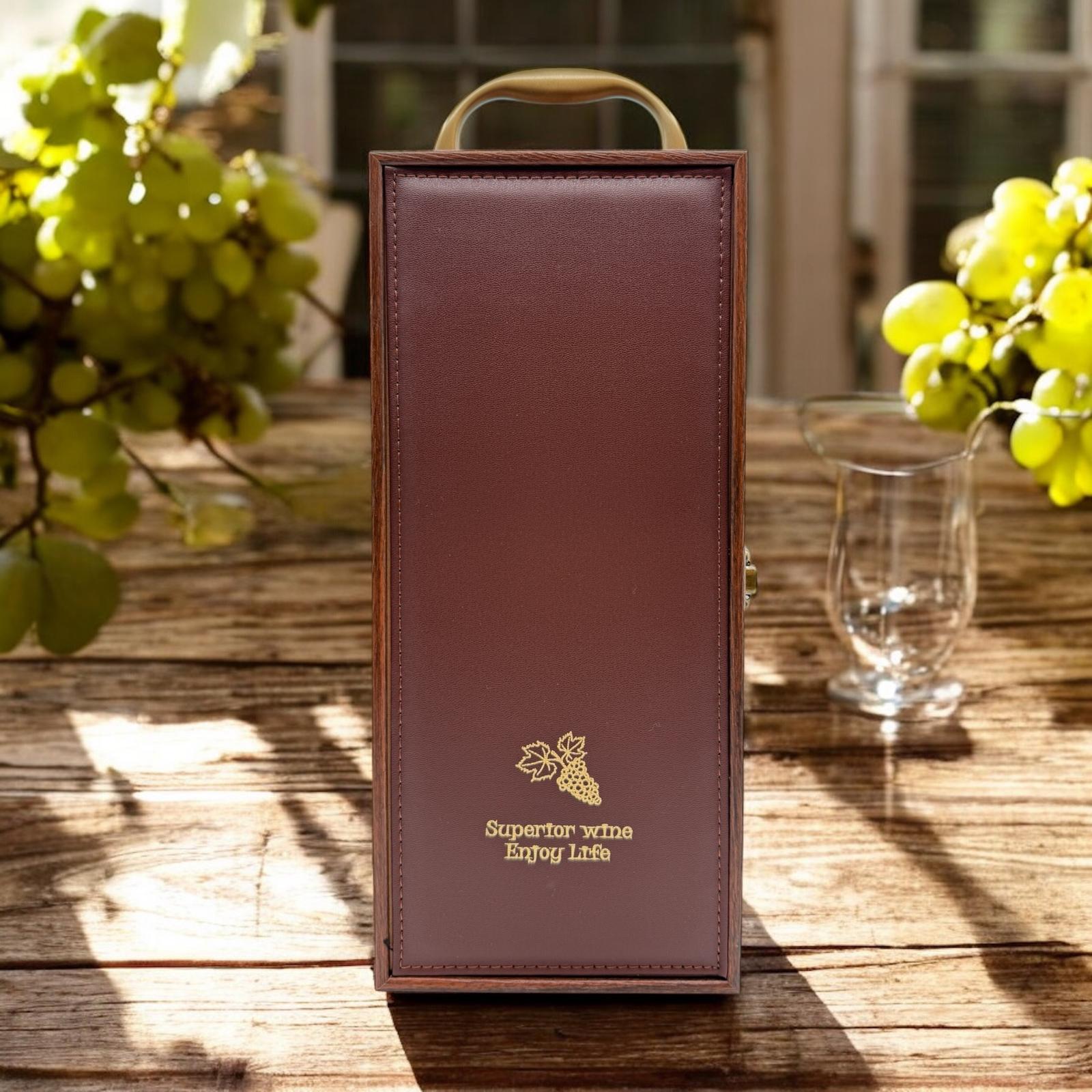 Box design: Delicate stitching connects the piece of leather to the front of the box for a classic and luxurious look. The handle is comfortable to hold and carry, made of high-quality and strong plastic, and the opening and closing clip is made of hard iron that provides safety and protection for the wine bottle