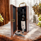Wooden wine gift box with leather front - with 3-piece wine accessory set