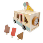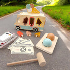 - This set includes an ice cream truck, fake money, ice creams in a variety of different shapes that can be threaded into the parts of the truck, a board and chalks with a cleaning cloth that allows for reusable use