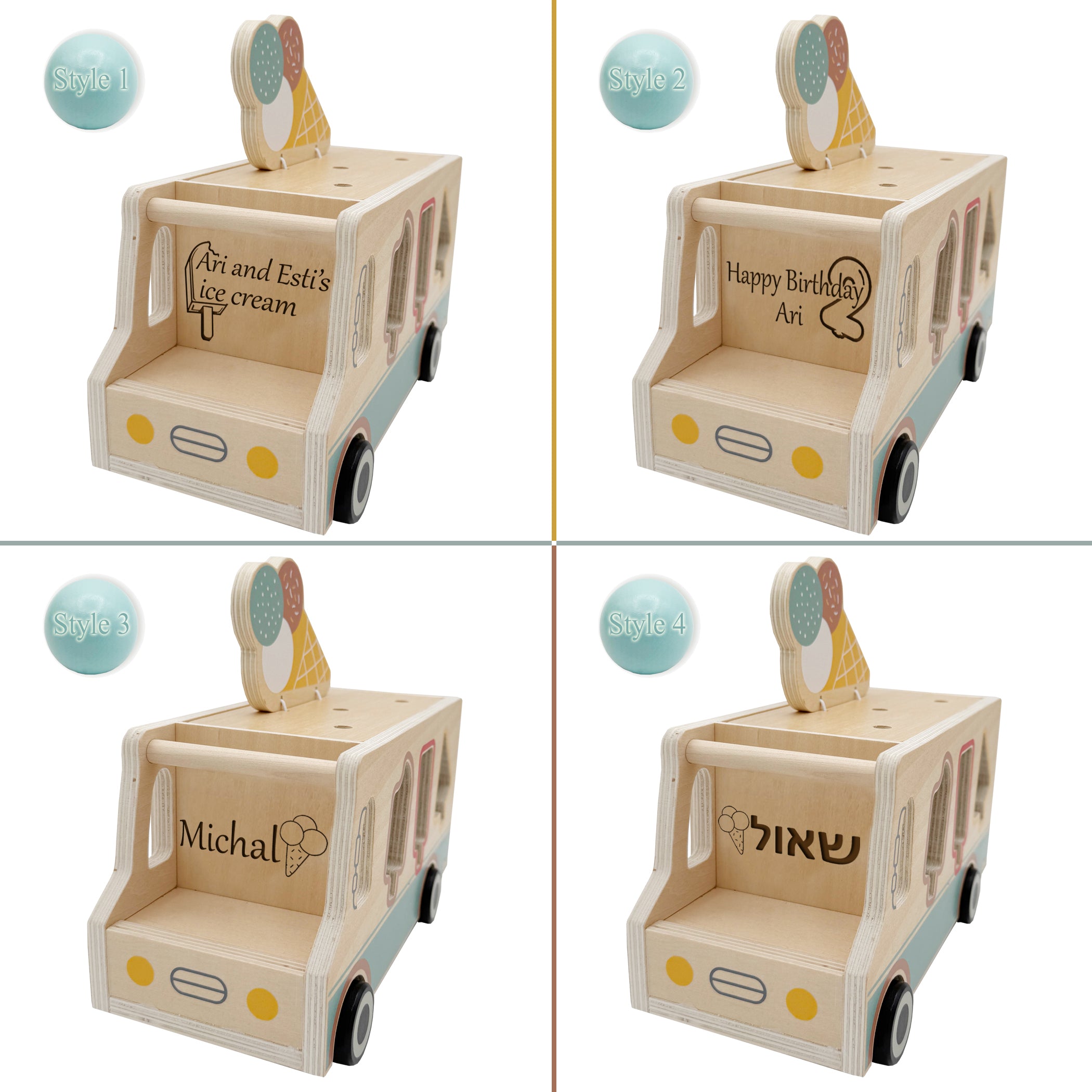 An ice cream truck for little kids, a fun, cool toy, with a variety of accessories and designed especially for your little one. Engraving the toddler's name on the ice cream truck will make your gift special and unique.