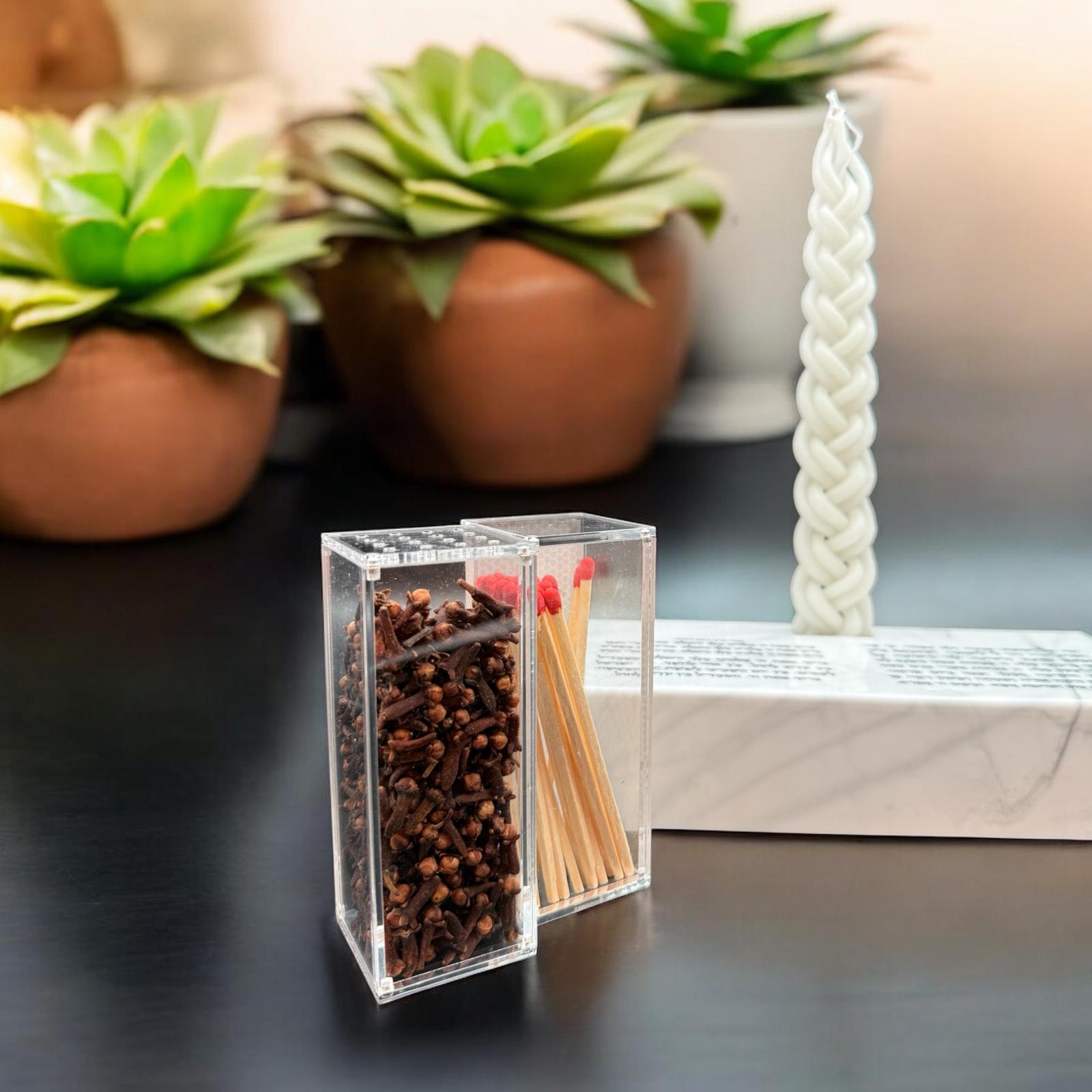 * 2 acrylic jars with magnets when closing and opening for Bsumim and Matches