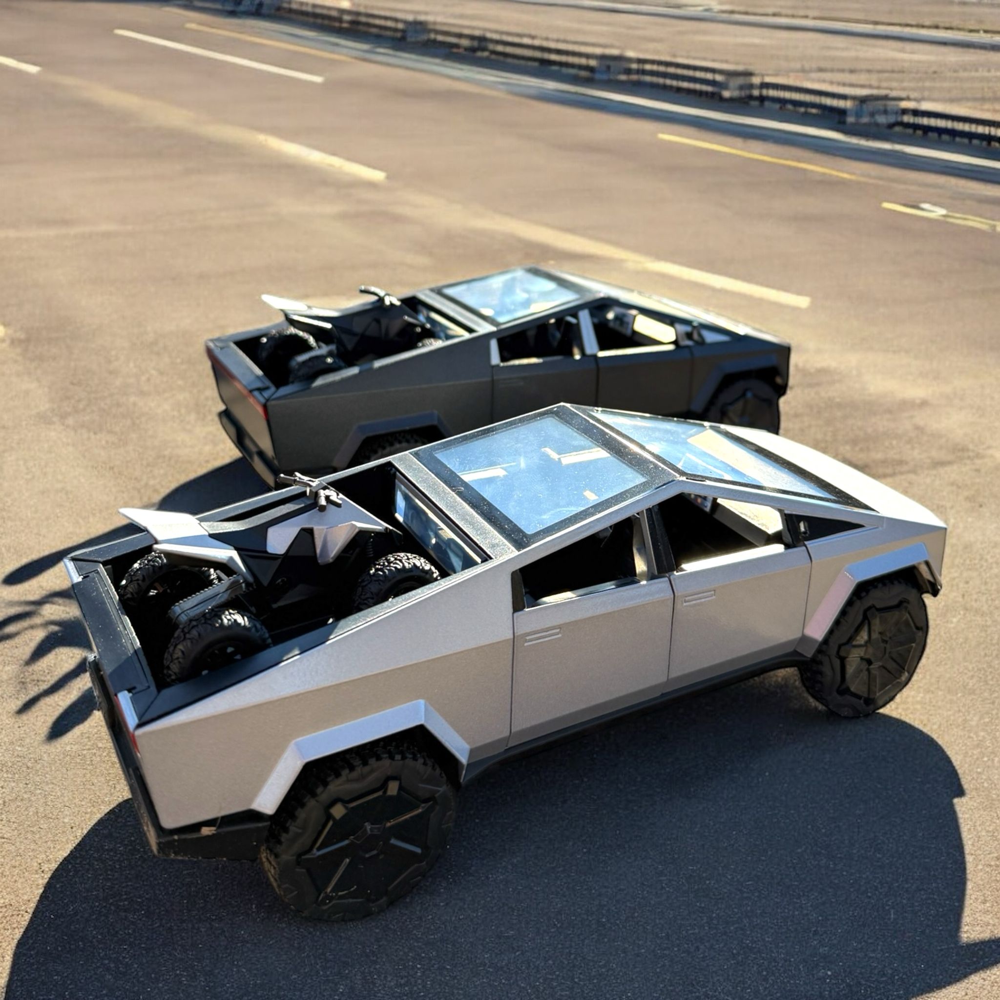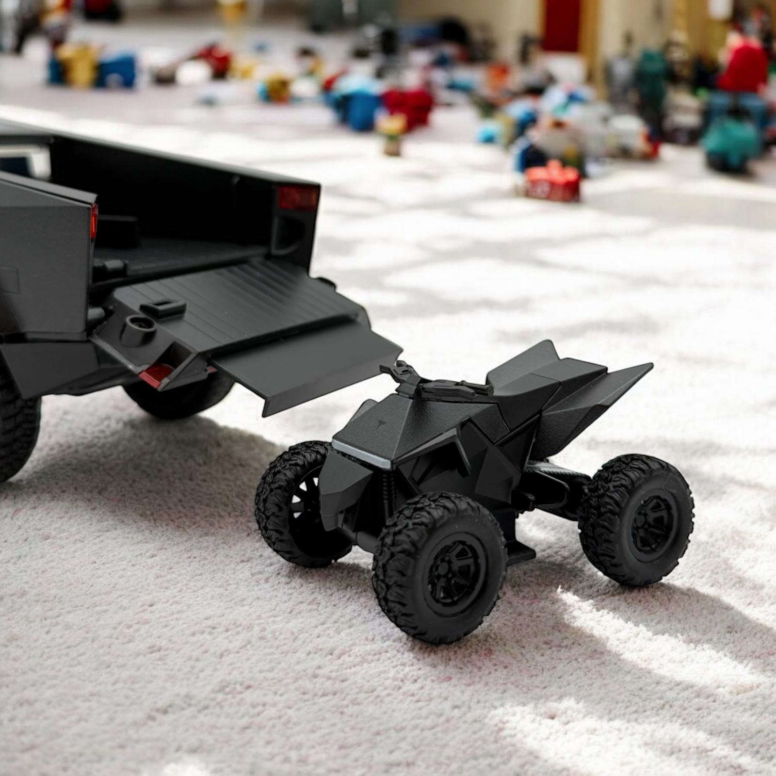 - The set includes a metal model of the Cybertruck with an RV motorcycle, which adds to the excitement of the game and provides a long and engaging playtime